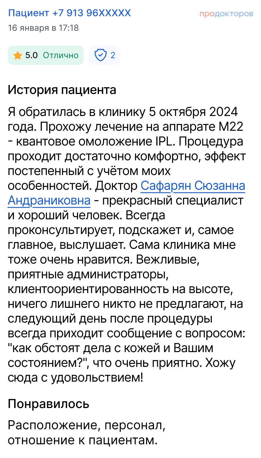 Мы работаем с лучшим,самым современным косметологическим, лицензионным оборудованием от Fotona, Vivace, M22 и других глобальных производителей. Все аппараты имеют регистрационные удостоверения Министерства здравоохранения. Отзывы клиентов оценивают качество процедур и сервиса выше 4.8/5, отмечая профессионализм команды и видимые результаты уже после первых сеансов