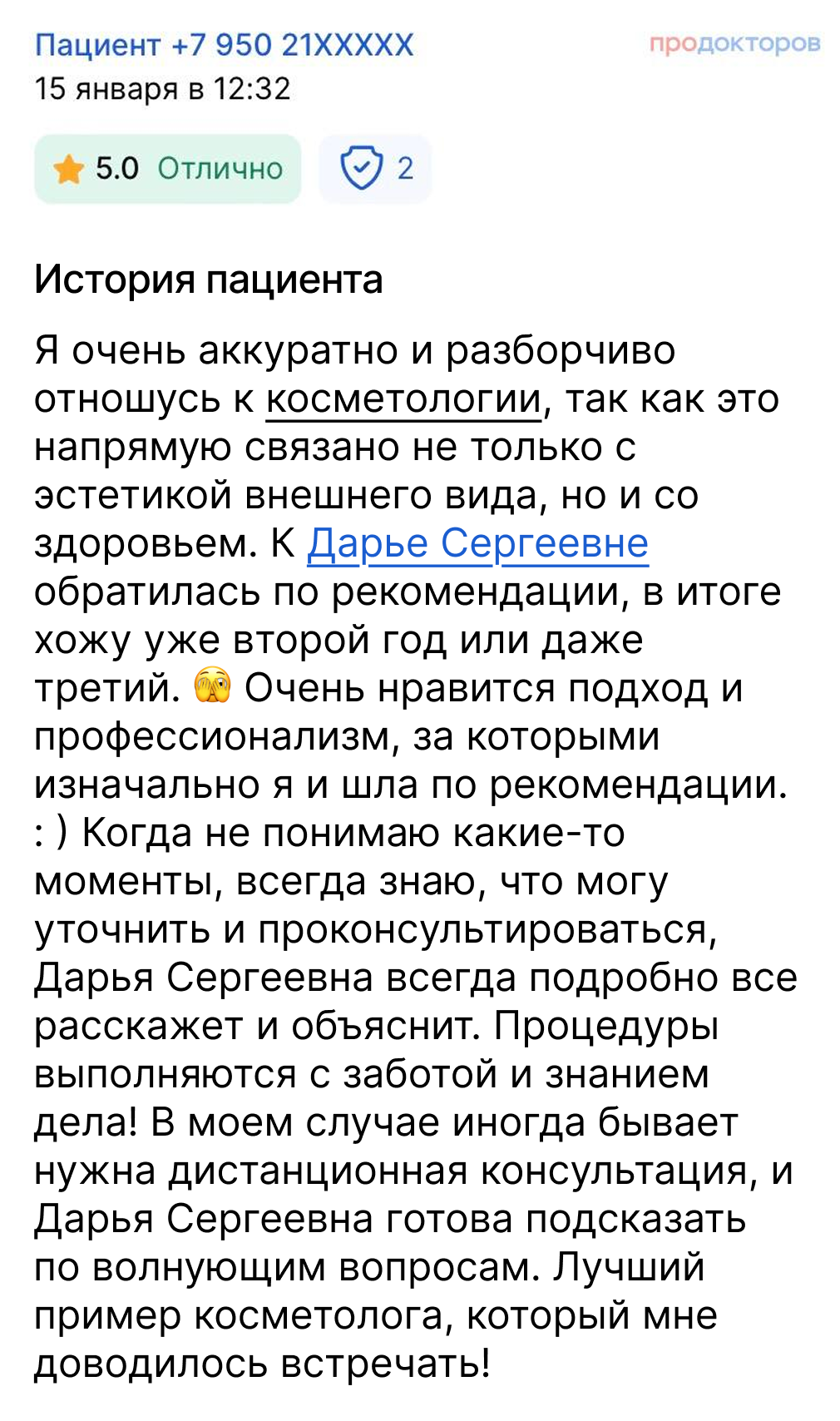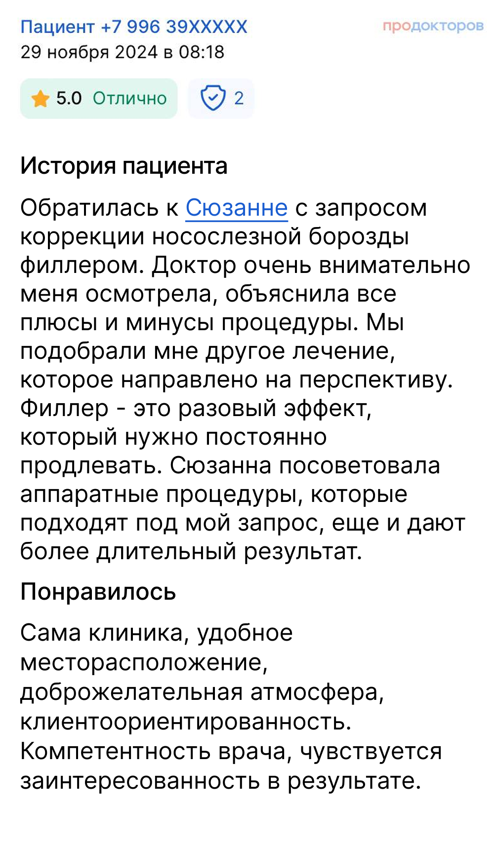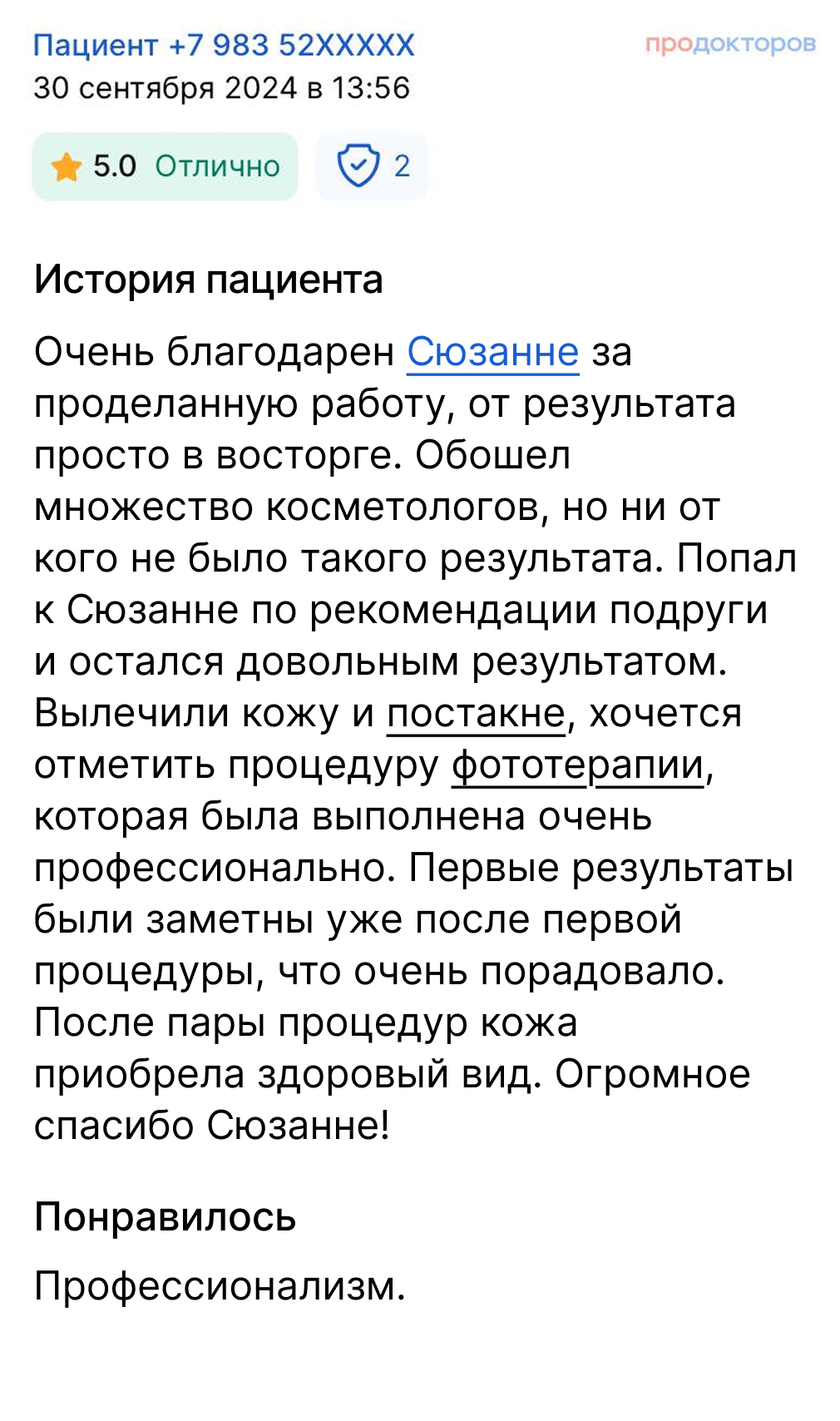 Все параметры подбирает врач косметолог с опытом более 10 лет, контролируя процесс на каждом этапе